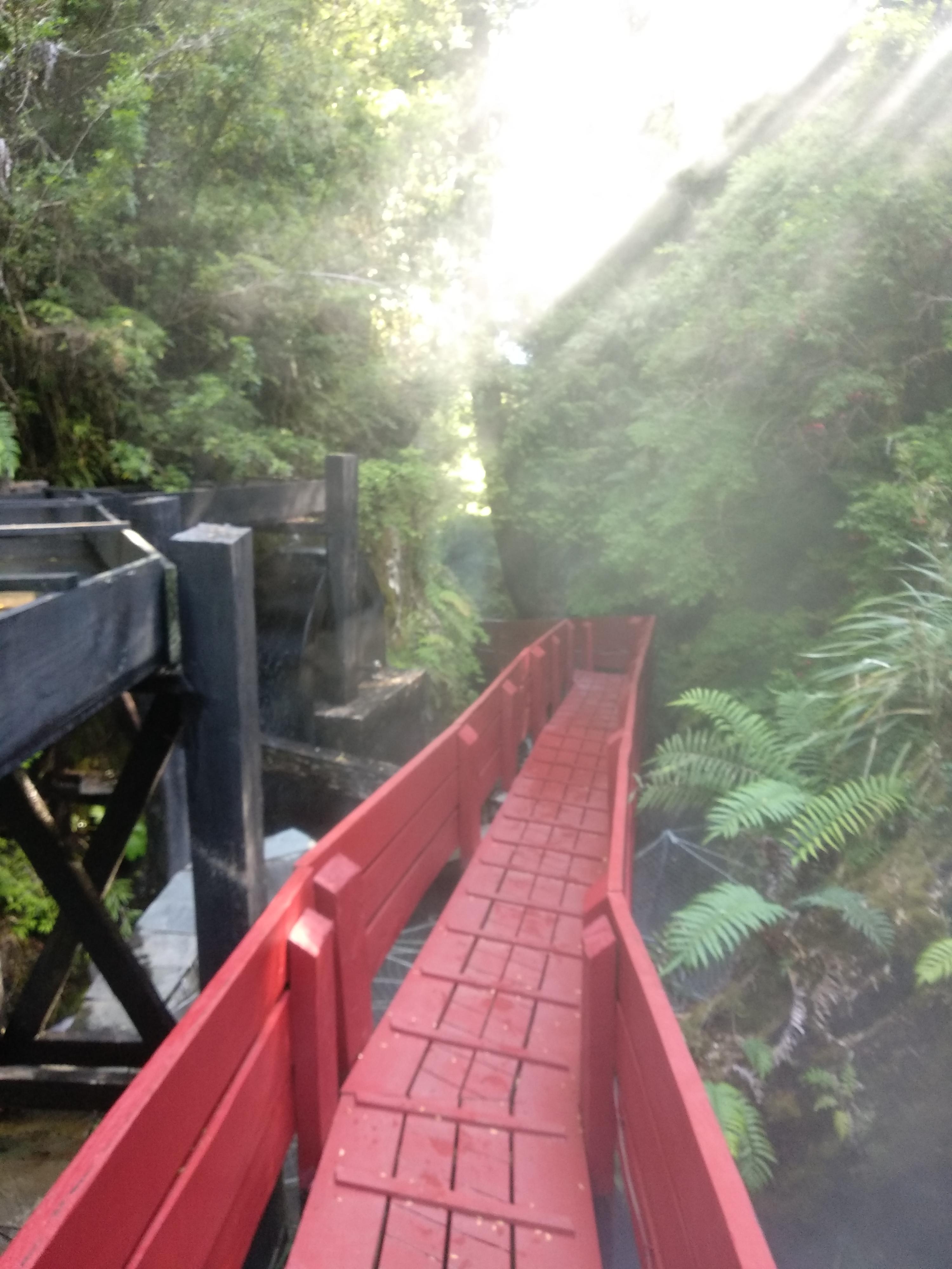 입구에서 여권을 맡기고 키와 사용할 수건을 받는다. 데크를 따라 올라가면 레스토랑이 있는데 이 곳에서 간단한 식사를 할 수 있다. 생각보다 그렇게 비싸지 않은 가격이다. 그리고 밖으로 나가면 빨간색 나무로 만들어진 데크를 따라 양 옆으로 다양한 온도의 온천이 있다.