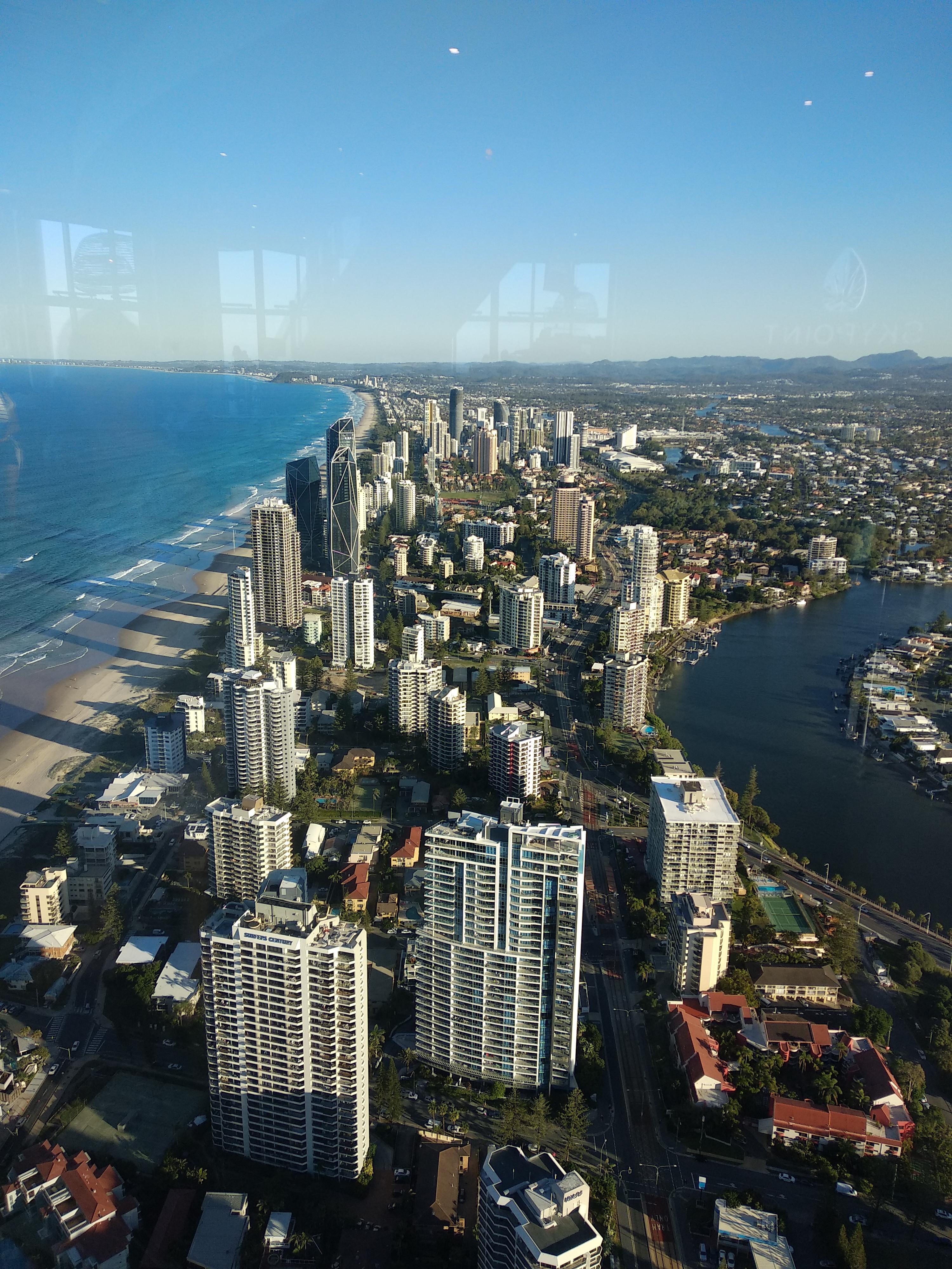 해변에서 수영을 하기 전 가장 먼저 스카이포인트 전망대에서 골드코스트 전경을 감상한다. 길게 늘어진 해변이 인상적이다.