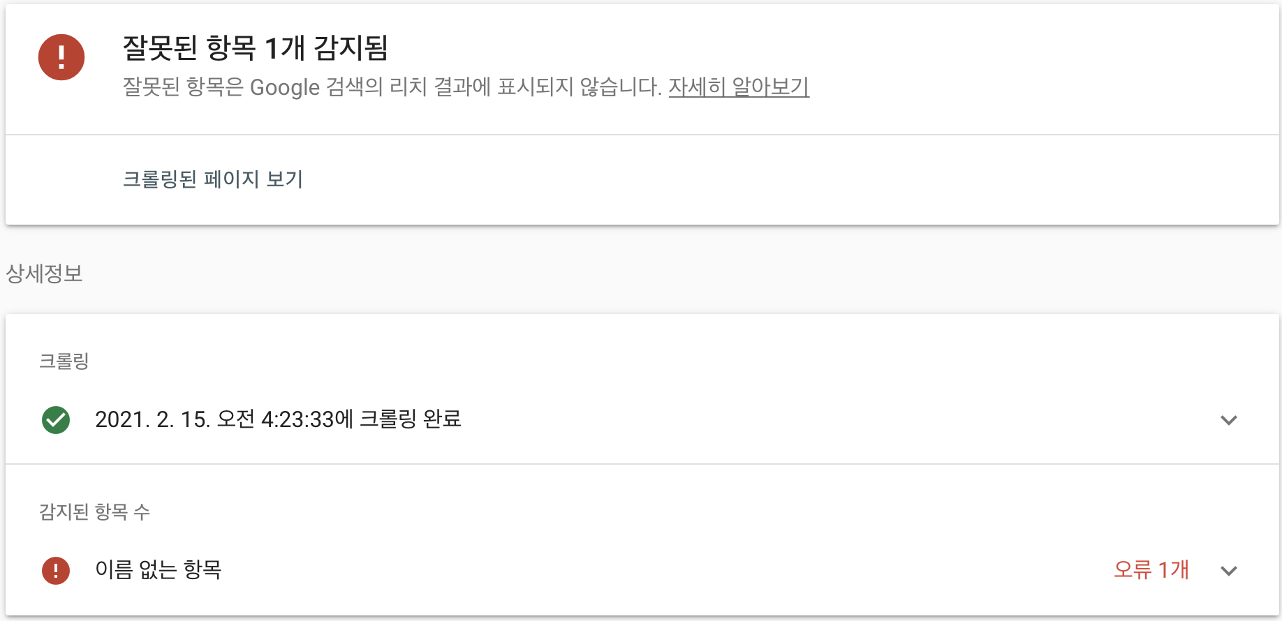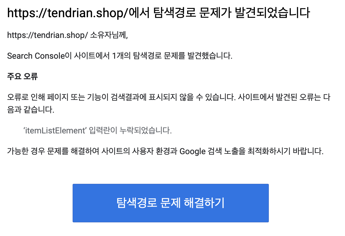 구글 서치콘솔에 내 블로그를 등록하고 rss 및 사이트맵을 제출한 뒤 수집이 정상적으로 이루어지고 있는 것을 확인했음에도 메일로 오류가 발생했다는 사실을 확인했다.