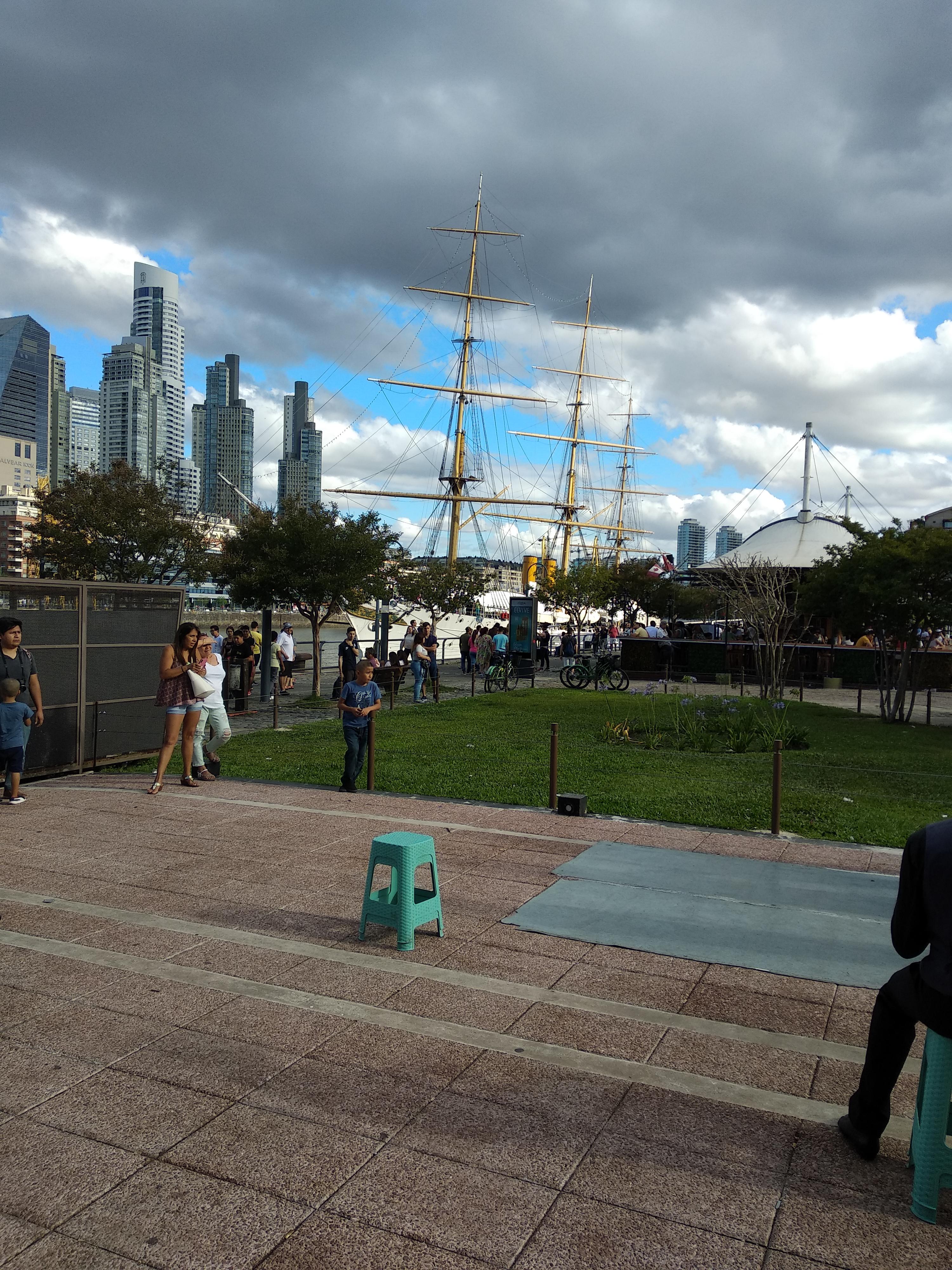 마요광장을 한바퀴 둘러보고 또르또니 카페를 가려고 했는데 줄이 너무 길어서 포기하고 마데로 항구 쪽으로 갔다. 여기가 바로 어제 사람이 죽은 곳이라 긴장감이 높았는데, 그래서 그런지 거리마다 경찰들이 꽤 많이 보였다. 아르헨티나 에서도 관광객이 사망한 사건 때문에 관광객이 줄지 않을까 치안에 더욱 열중하겠다는 입장을 내었는데 실제로도 한바퀴 둘러보면 경찰을 꼭 만날 수 있었다.