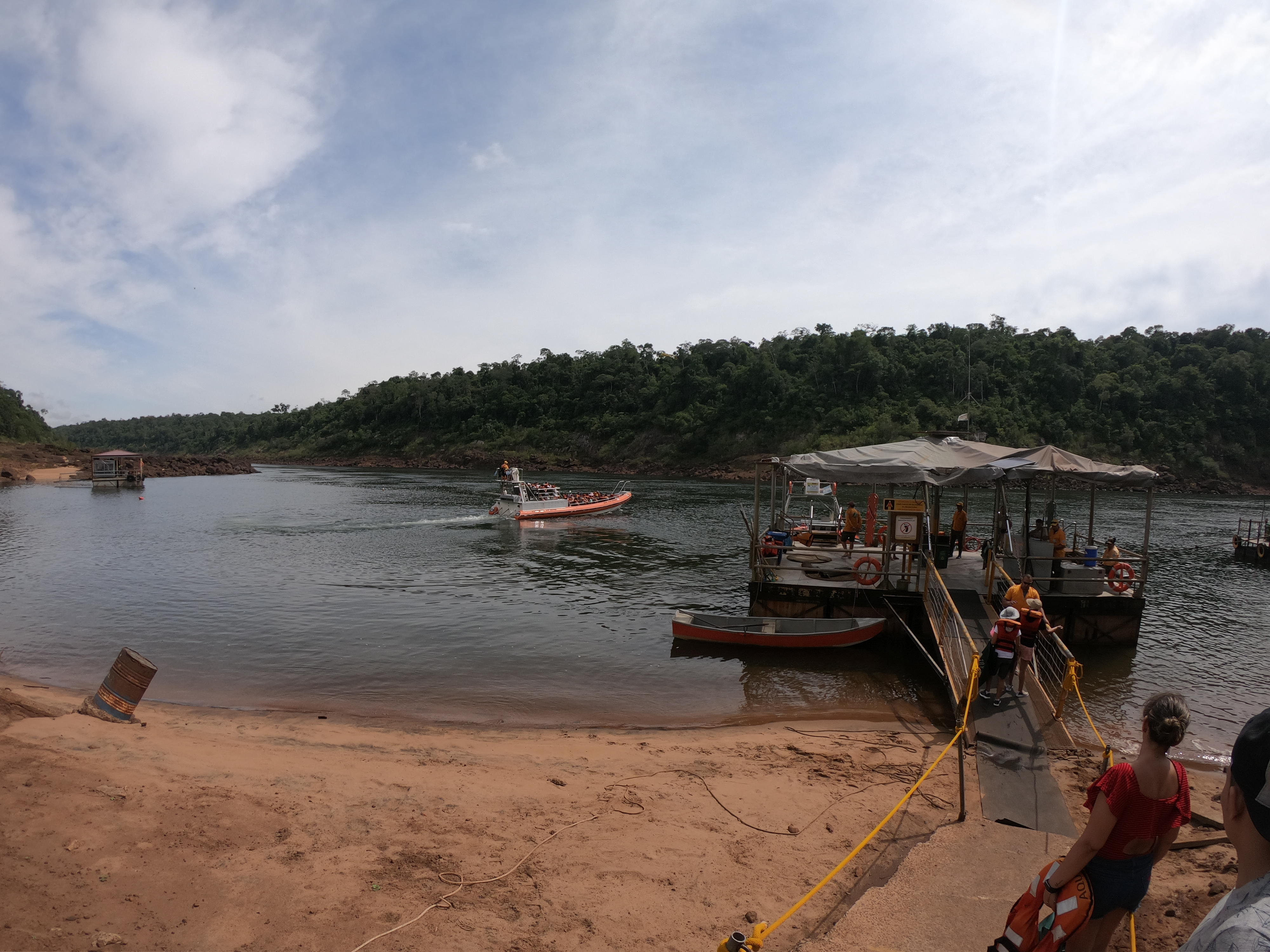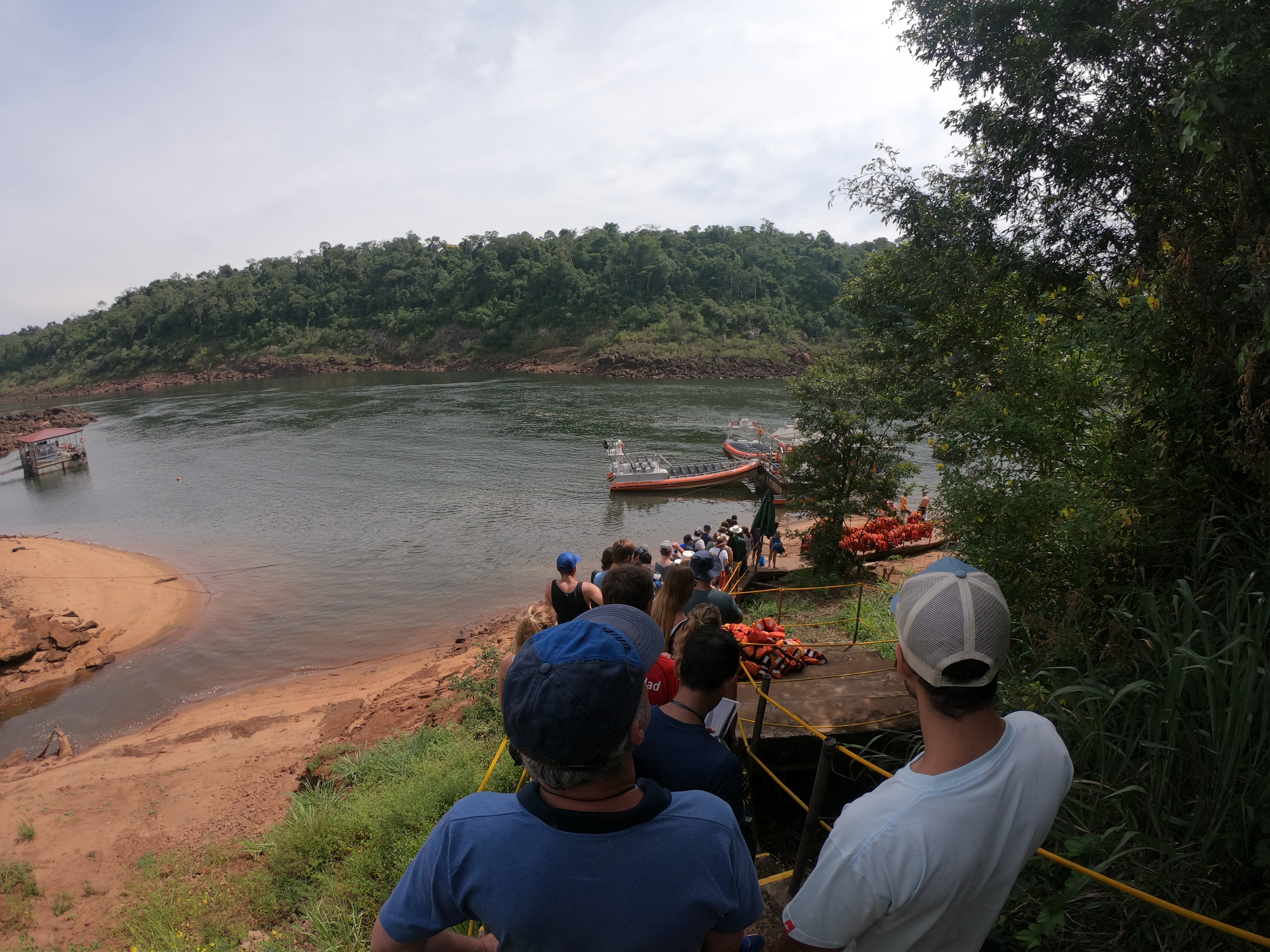 보트를 타고 폭포로 이동하는 강줄기 반대편에도 보트를 타는 사람들이 보이는데 브라질 이과수에서 보트투어를 하는 사람들이다. 아르헨티나에서 보트투어를 했다면 브라질에서는 하지 않아야 한다. 코스가 70% 동일한데, 그럼 나머지 30%는 이라고 물어보겠지만 아르헨티나 쪽 폭포로는 갈 수 없어서 브라질은 아르헨티나 보트 투어의 70%만 하고 끝이다.