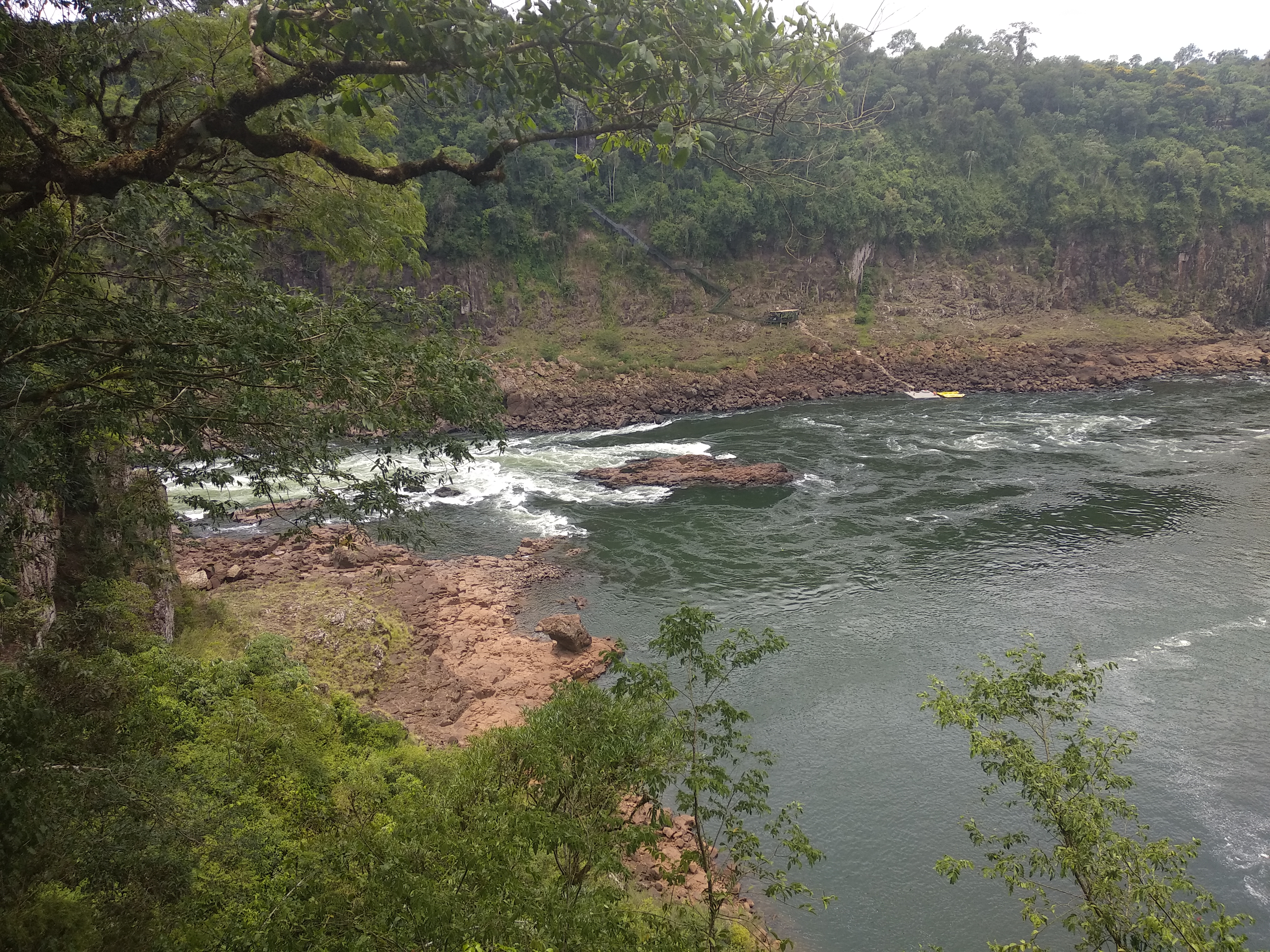 저 멀리 어마어마한 물보라가 이는 곳이 꿈의 폭포 악마의 목구멍이다. 그리고 저기 아래 보트 투어 말고, 노란건 레프팅을 하는 거다. 보트투어 외에 레프팅 투어도 있는데 저걸 하는 사람은 본 기억이 없다.