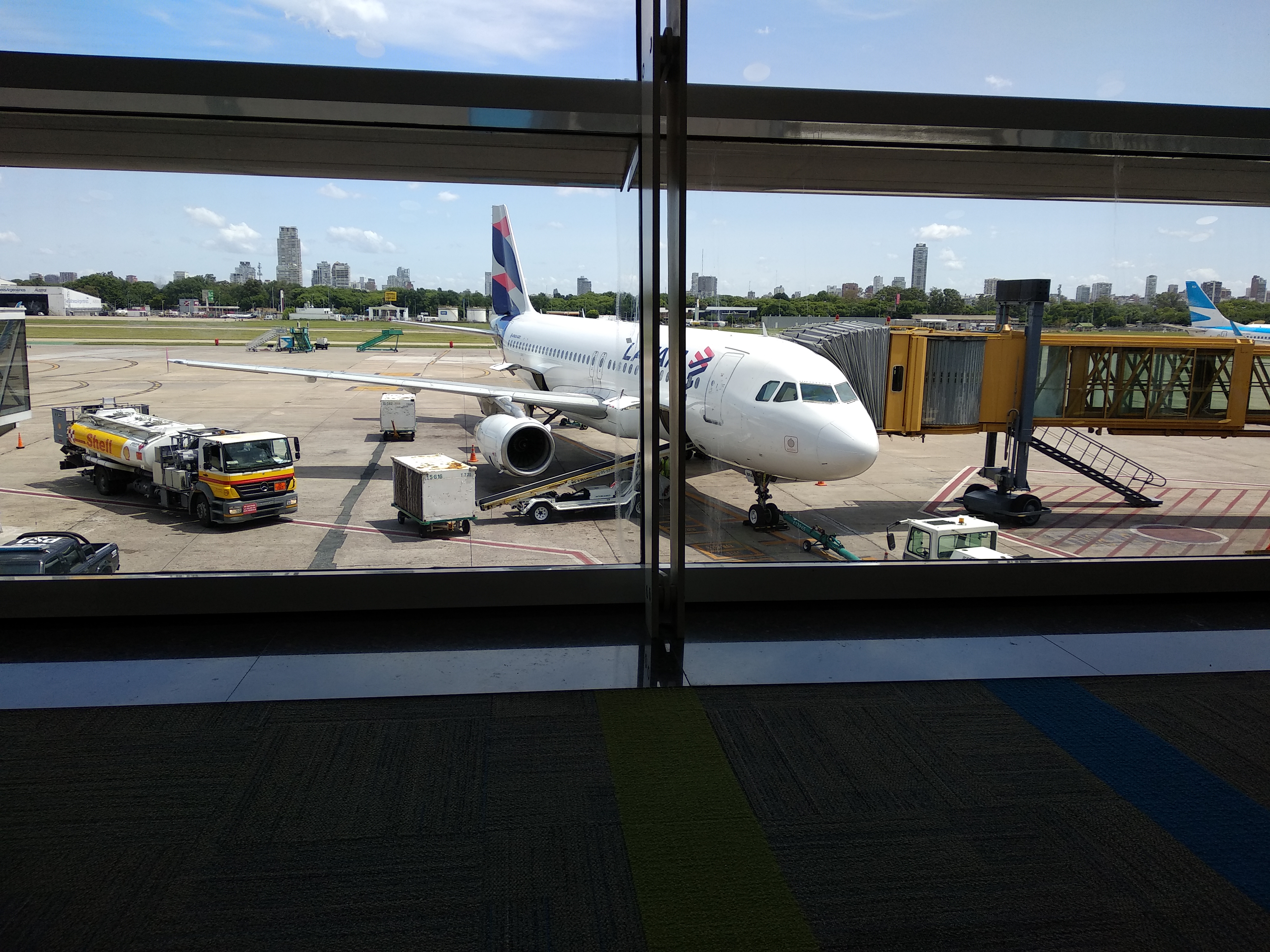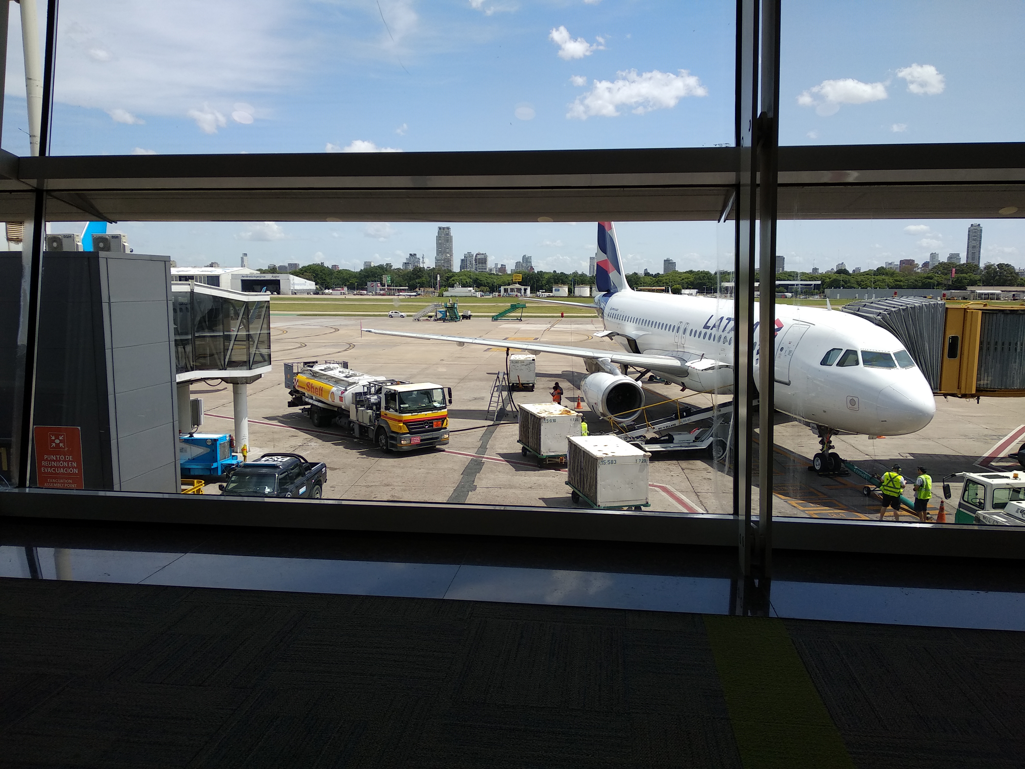 비행기에 주유를 하는 모습을 처음 봤다. 주유구가 어디 있나 했더니 바로 날개쪽에 주유를 하고 있다. 생각해보니 엔진이 바로 날개에 달려있다는 것을 타고 다니면서도 생각을 안했던 것 같다. 신기하네 하다가 당연한거자나 라고 깨달았다. 지금 저 비행기는 우리를 이과수로 데려다 줄 비행기인데, 우리가 기다리는 동안 바로 이과수에서 날아와서 다시 이과수로 떠나는 비행을 하게 된다.