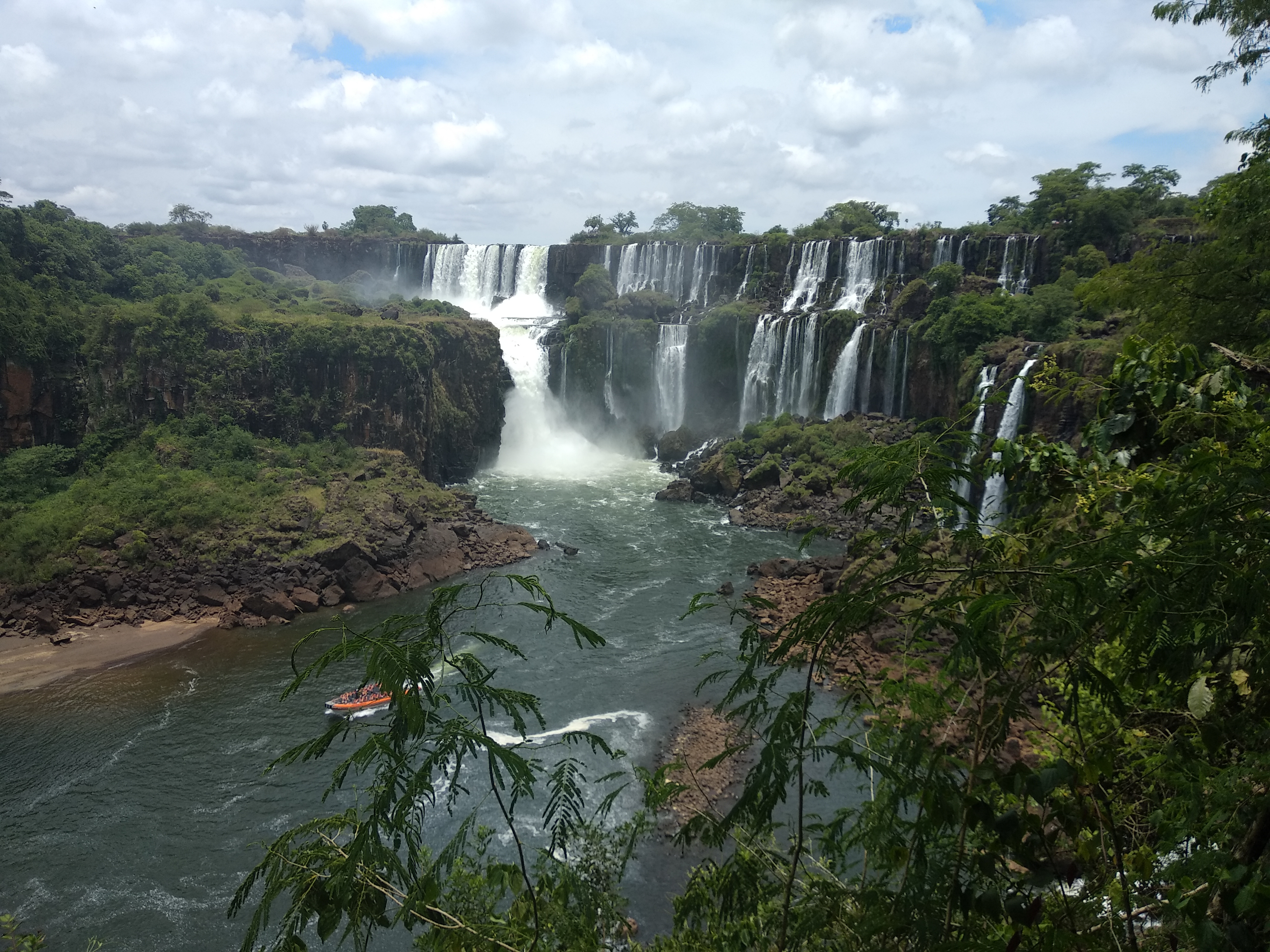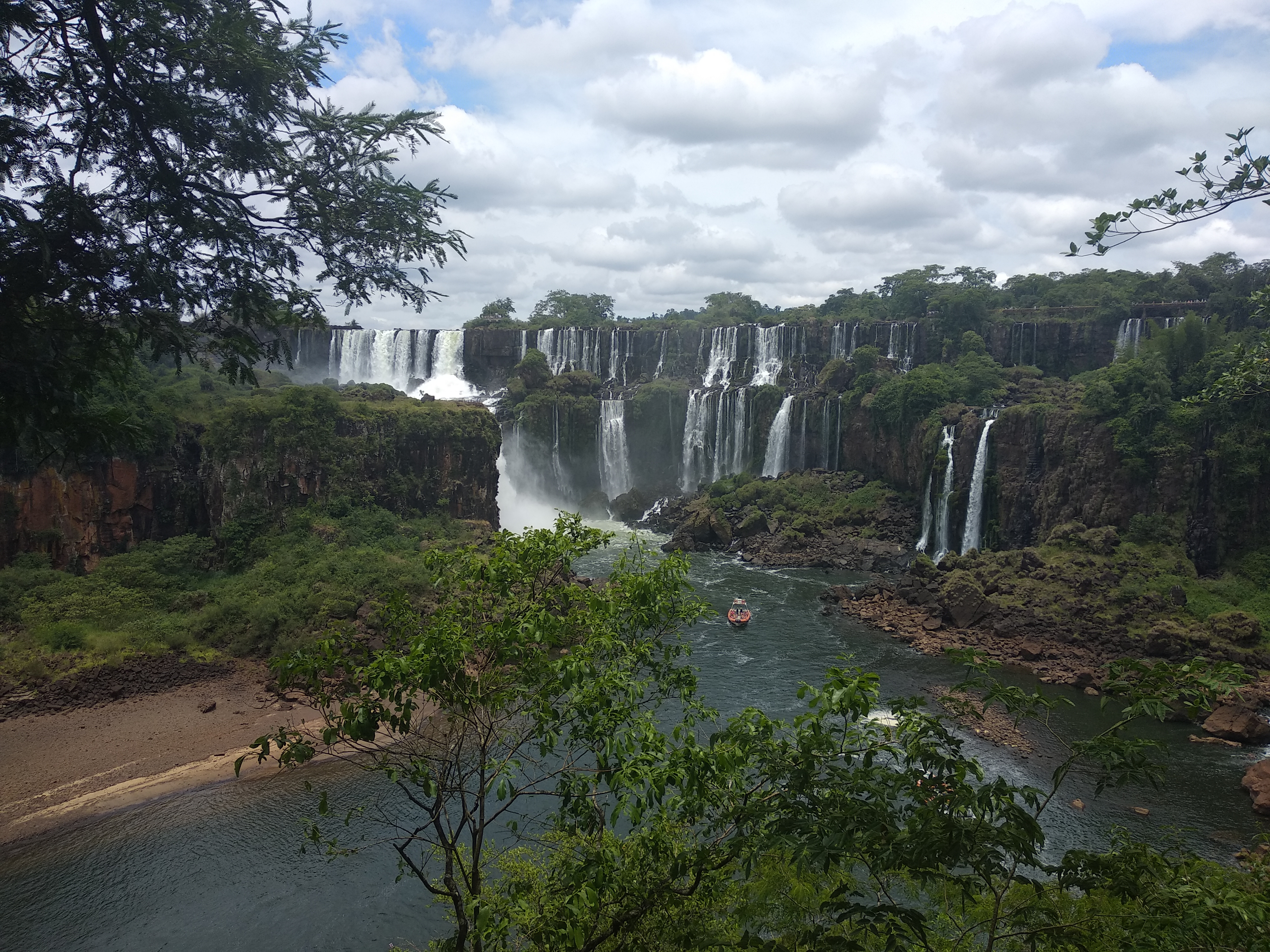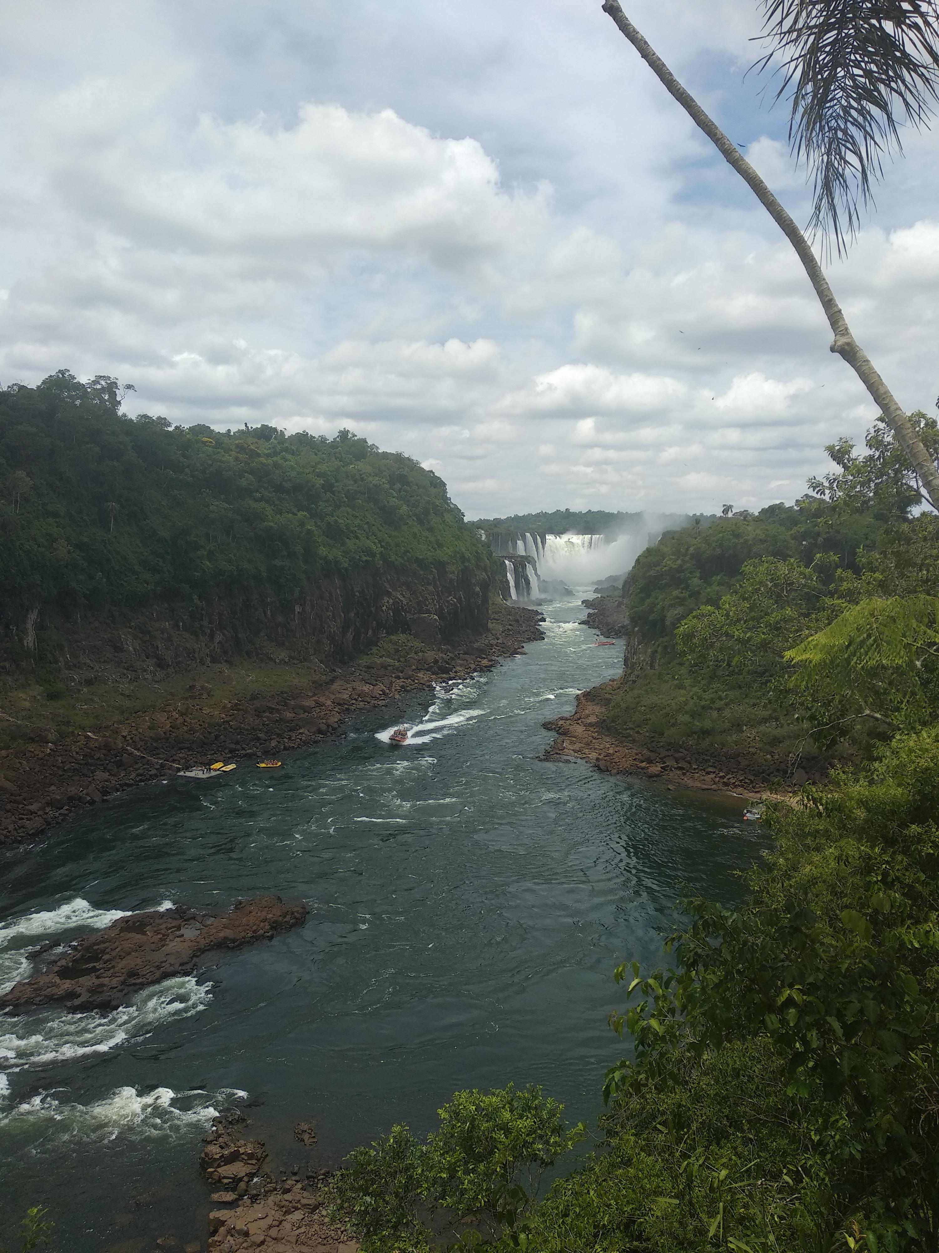 이 작은 폭포에서 보트가 1차 샤워를 한다. 그리고 뒤로 조금 이동해서 다른 곳에 있는 중간 사이즈 정도의 폭포 샤워를 하는데 거기가 하이라이트다. 그런데 방송으로만 봤을 때 거기가 악마의 목구멍인가 착각을 했는데, 악마의 목구멍 이과수의 하이라이트인 폭포는 위 사진 기준 저 멀리 보이는 폭포의 가장 오른쪽 물보라가 조금 보이는 곳에 있다. 규모가 어마어마하다. 상상력을 동원해도 상상하기 힘든 수준이다.
