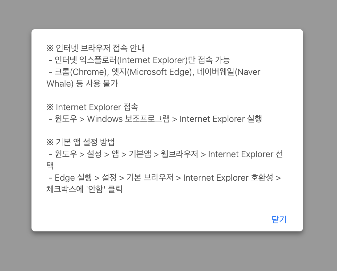 해당 페이지는 인터넷 익스플로러만 접속 가능.
