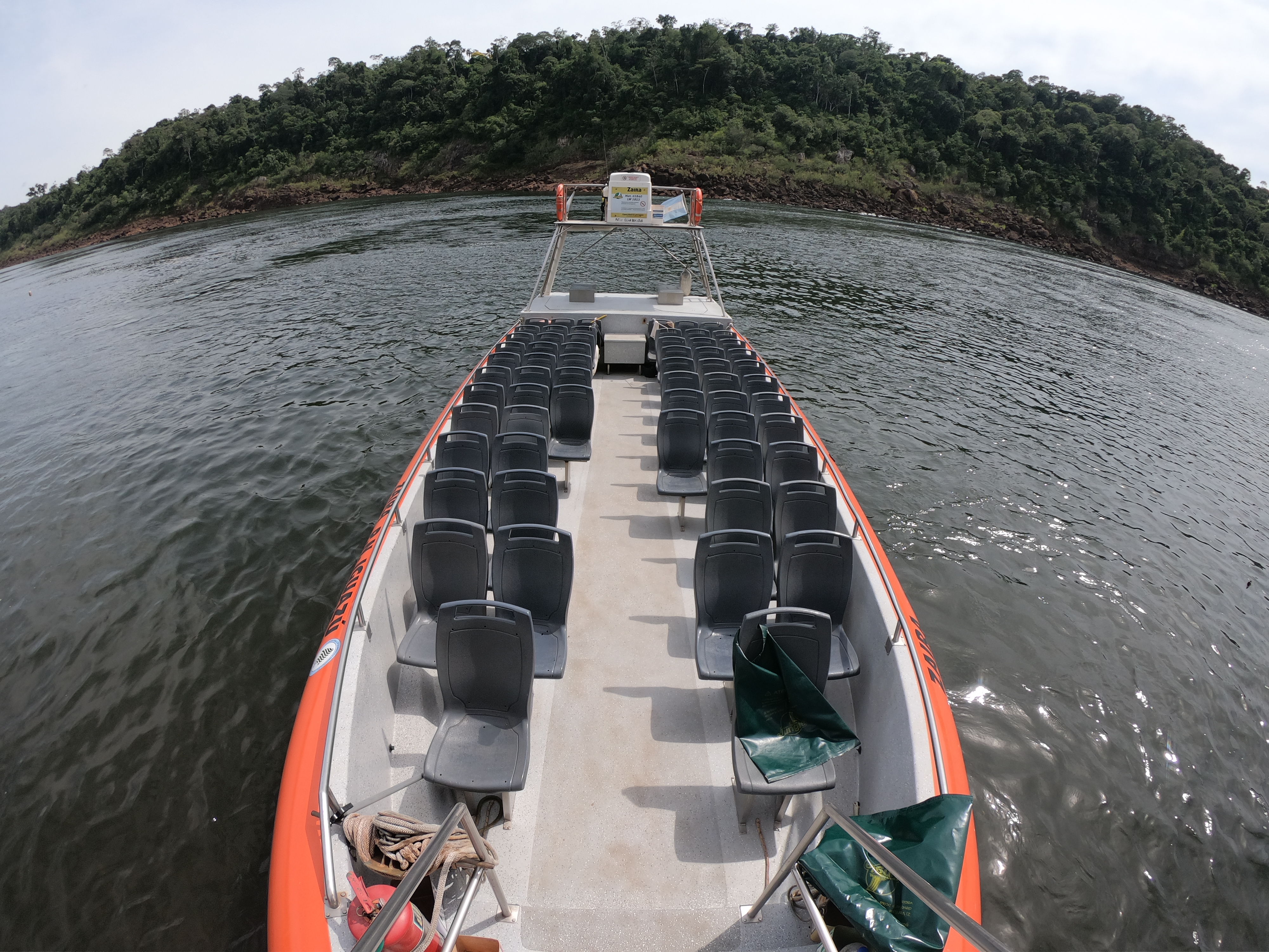 보트를 타고 폭포로 이동하는 강줄기 반대편에도 보트를 타는 사람들이 보이는데 브라질 이과수에서 보트투어를 하는 사람들이다. 아르헨티나에서 보트투어를 했다면 브라질에서는 하지 않아야 한다. 코스가 70% 동일한데, 그럼 나머지 30%는 이라고 물어보겠지만 아르헨티나 쪽 폭포로는 갈 수 없어서 브라질은 아르헨티나 보트 투어의 70%만 하고 끝이다.