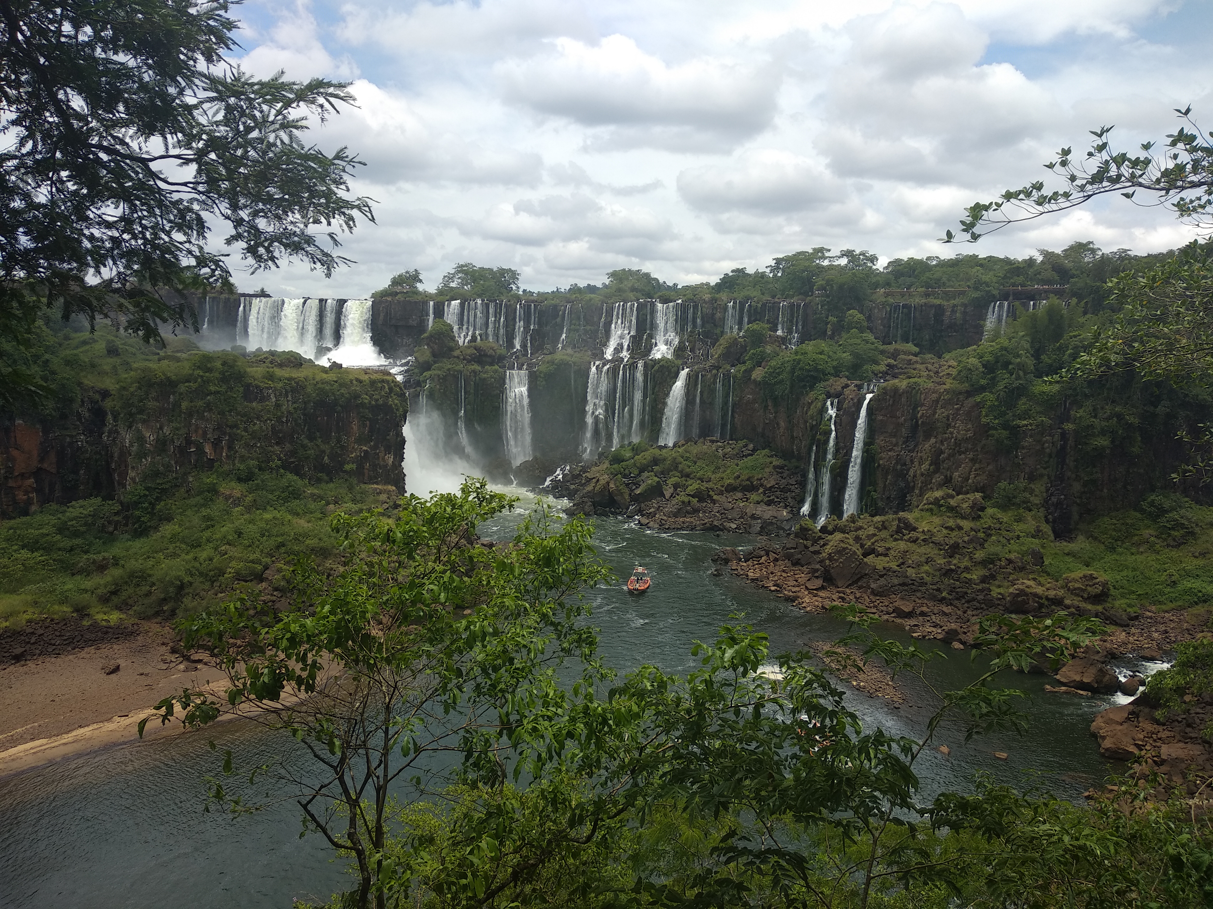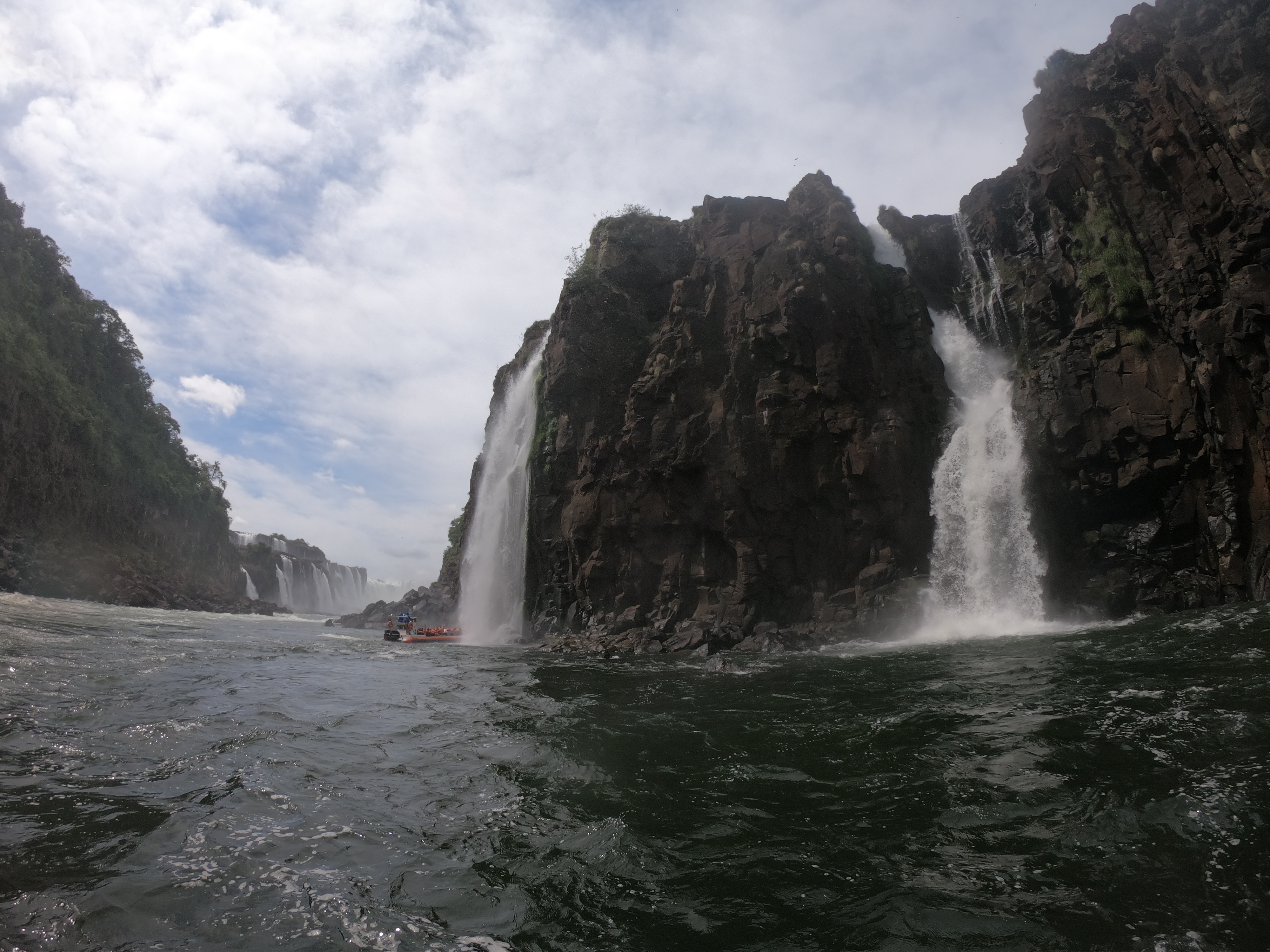 이 작은 폭포에서 보트가 1차 샤워를 한다. 그리고 뒤로 조금 이동해서 다른 곳에 있는 중간 사이즈 정도의 폭포 샤워를 하는데 거기가 하이라이트다. 그런데 방송으로만 봤을 때 거기가 악마의 목구멍인가 착각을 했는데, 악마의 목구멍 이과수의 하이라이트인 폭포는 위 사진 기준 저 멀리 보이는 폭포의 가장 오른쪽 물보라가 조금 보이는 곳에 있다. 규모가 어마어마하다. 상상력을 동원해도 상상하기 힘든 수준이다.