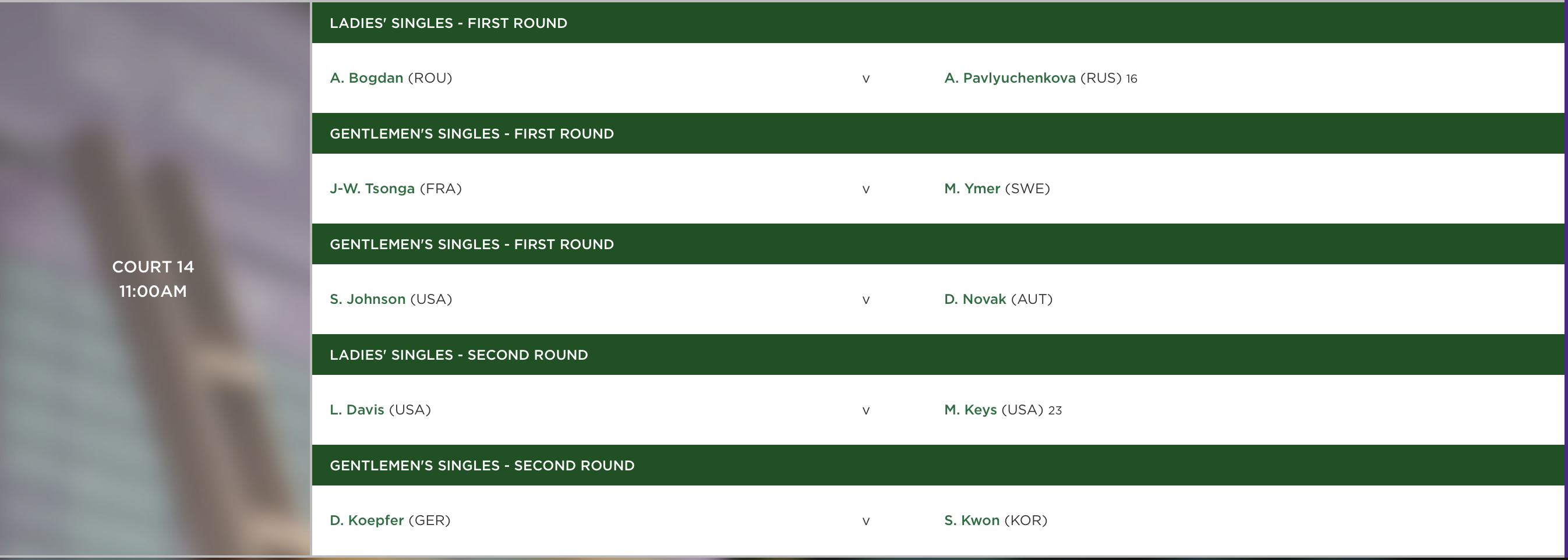 2021 윔블던 테니스 대회 남자단식 2회전에 올라간 권순우 선수 출전 경기 중계 안내드립니다. 경기시간은 2021년 6월 30일 수용리 저녁 11시 30분 예정이 되어 있는데 앞경기 순서에 따라 변동 될 수 있습니다. 14번 코트에 배정되어 있고 앞서 경기가 현지 시간 오전 11시 (한국시간 저녁 6시) 부터 진행됩니다. jtbc에서는 14번 코트 여자단식 2라운드 로렌 데이비스 vs 메디슨 키스 경기도 저녁 9시 30분 중계 예정으로 편성해 놓았습니다.