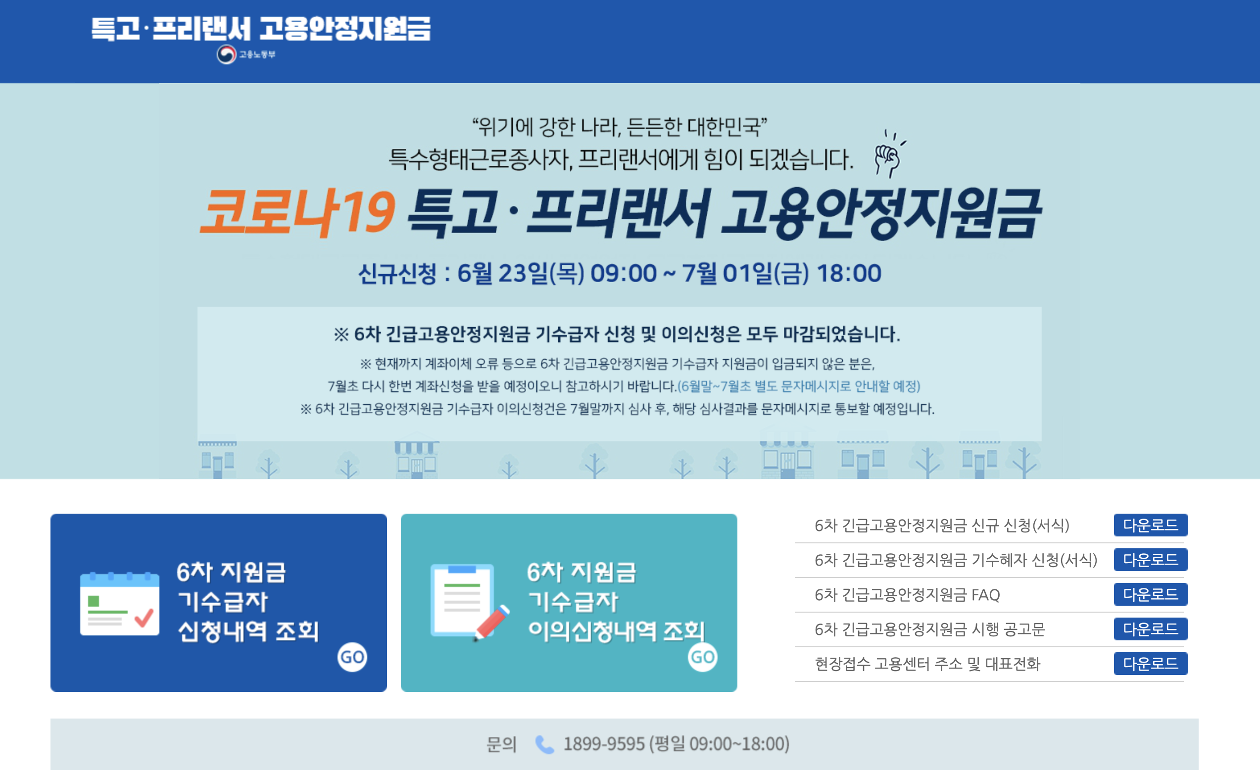 6차 특고 프리랜서 코로나19 긴급고용안정지원금 신규 신청