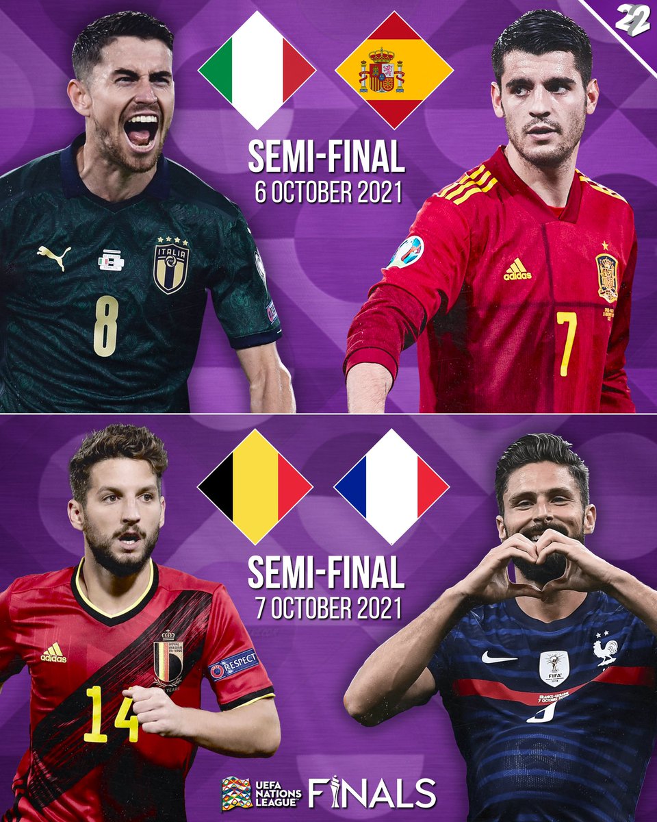 2020-2021 UEAF 네이션스리그 4강 경기가 인터내셔널 브레이크 기간인 10월 7일과 8일 (한국시간 기준) 펼쳐집니다. 코로나 19로 인해 유로2020이 연기되었고 더불어 네이션스리그 역시 순연되어 이제서야 4강 플레이오프를 치르게 됩니다. 더불어서 다음주 10월 10일 3-4위 결정전, 10월 11일 결승전이 중계 됩니다.