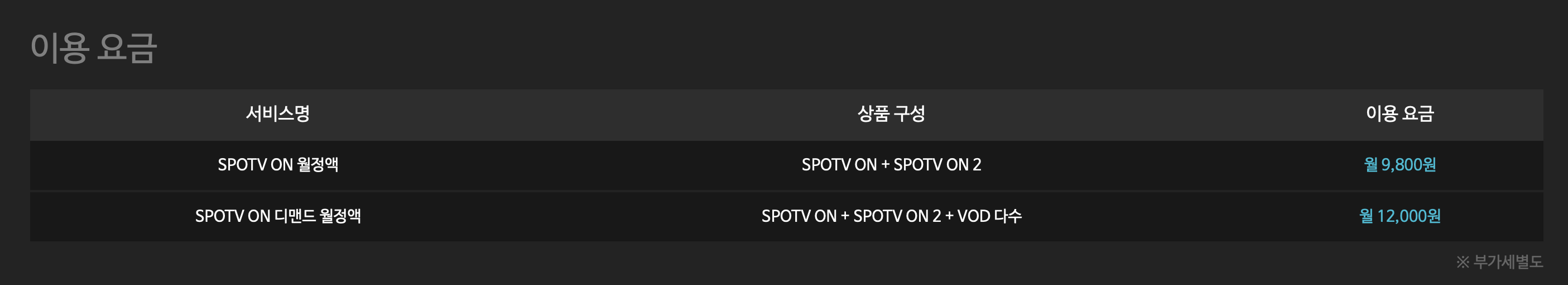 스포티비온 월정액은 9,800원에 부가세 10%가 별도입니다.